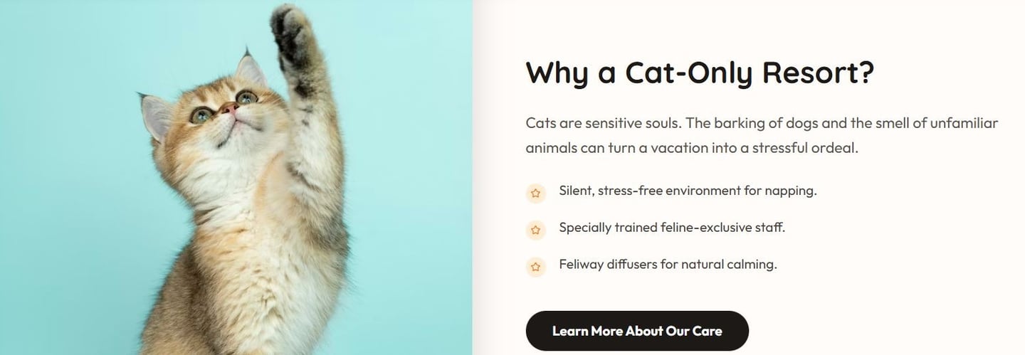We are designed exclusively for cats—no dogs, no barking, no chaos.